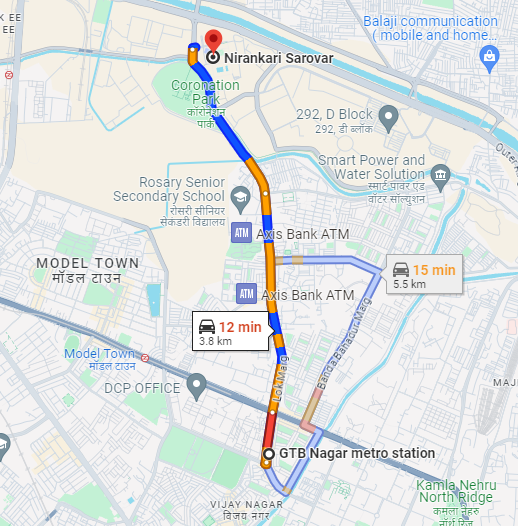2. GTB Nagar Metro Station which is around 4 KMs and takes around 10 – 15 mins. You can get E-Rickshaws from the metro station